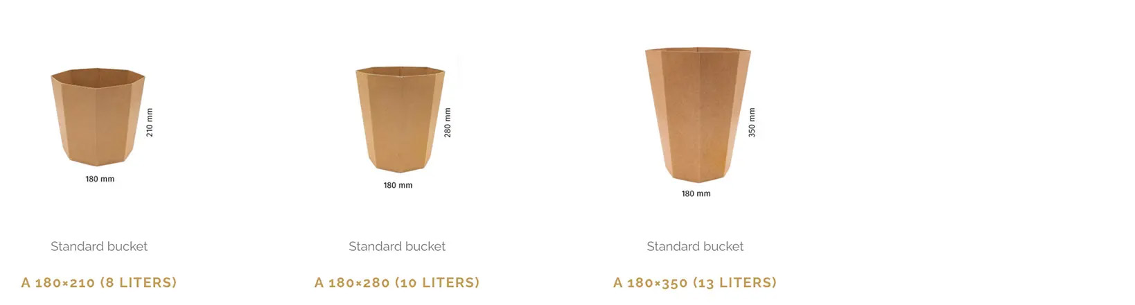 The material of the buckets is 700 gram/m2 PE waterproof cardboard and can be ordered in the standard colours brown and white.